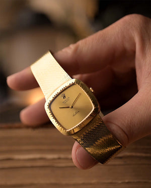 The Rolex Cellini line showcases the dressier side of Rolex compared to its more well-known sport models. This version is fitted in a 18k-yellow-gold square-shaped case, which is an unusual case shape for Rolex. The...