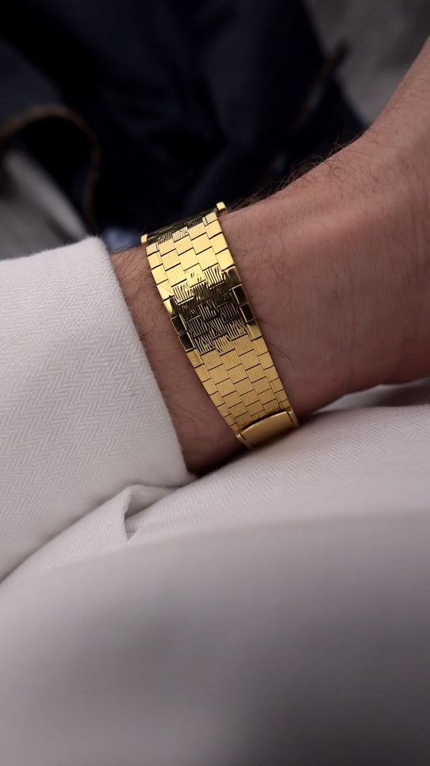 This Piaget Polo Reference 15561 C 701 is crafted from 18k yellow gold, this watch features a case with smooth, rounded edges that beautifully juxtapose against the sharp, geometric lugs, creating a profile that's both bold...