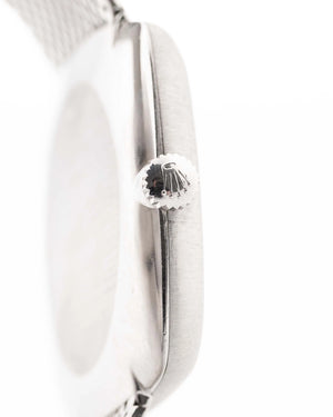 This model comes with silver colored sunburst dial which matches the 18k white gold case and bracelet perfectly. The refined brushed bezel design and Rolex logo crown on the clasp is the icing on the cake.